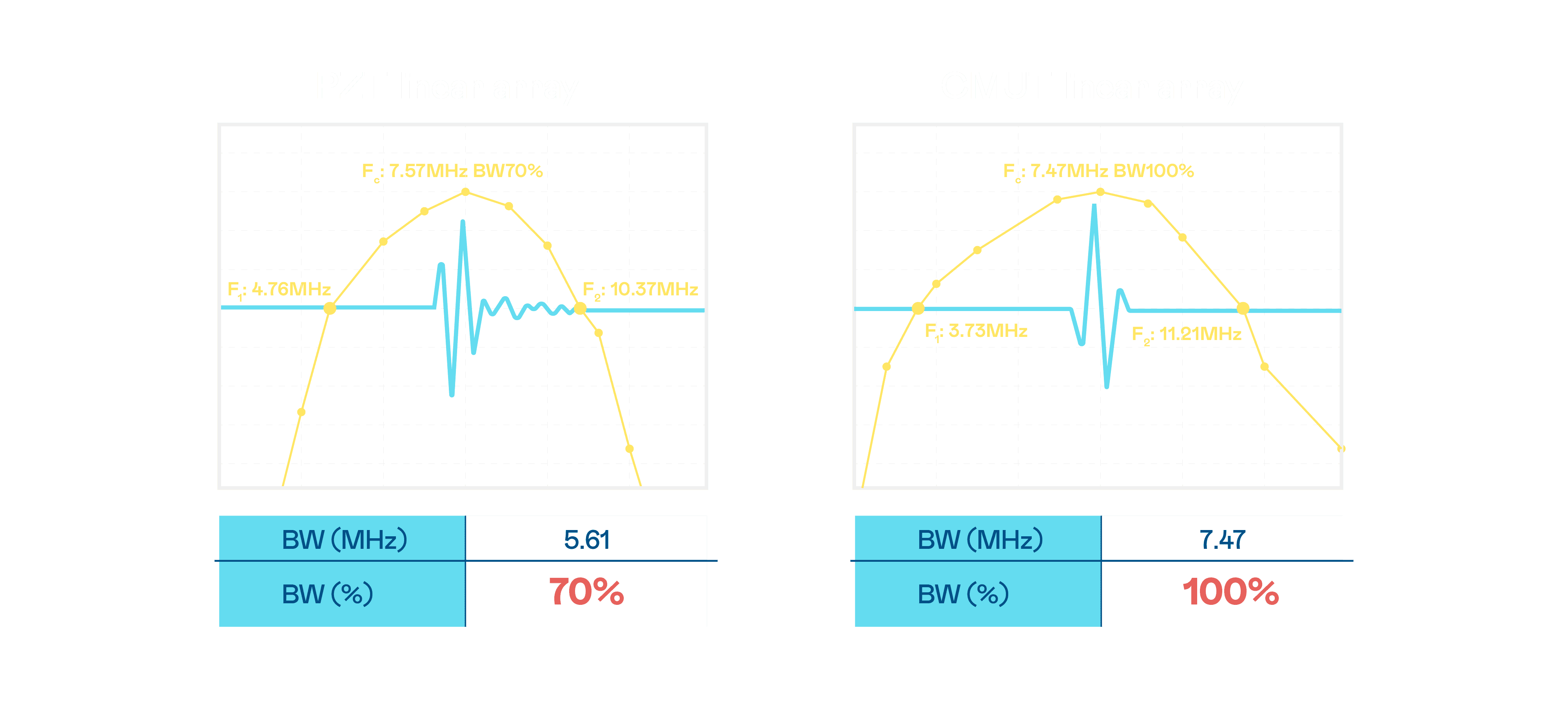 超音波影像的解析度高低,,,,首先取决于探头能发出的讯号频宽。。杏悦2 CMUT 可提供高清晰的超音波讯号,,,,提供高频宽、、、、高灵敏度、、、影像纹理细节更高的超音波影像,,,协助医护人员缩短影像判读时间及利用精准的医疗影像进行诊断。。