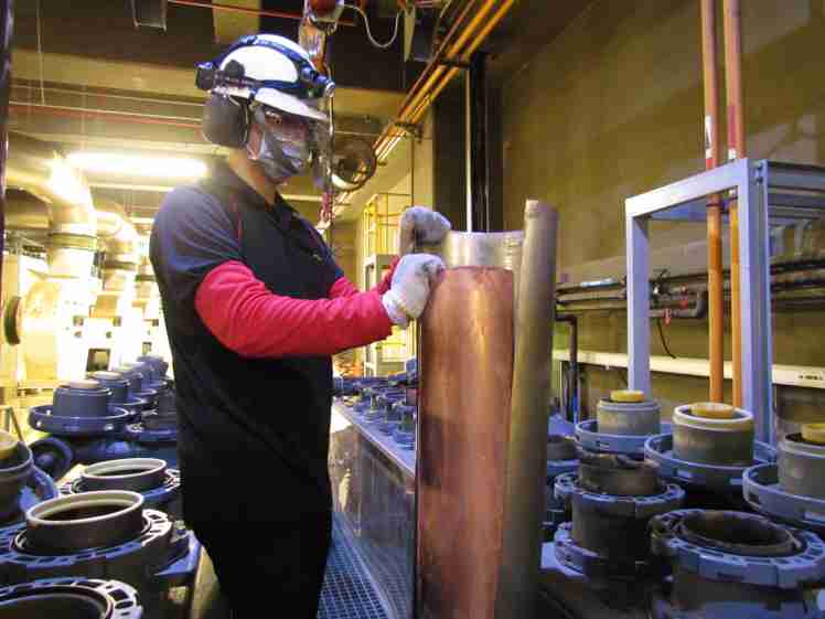 杏悦2将废弃物转化成有效的工业或民生原物料,,,,图为废铜液淬炼后再制成纯度极高的铜管