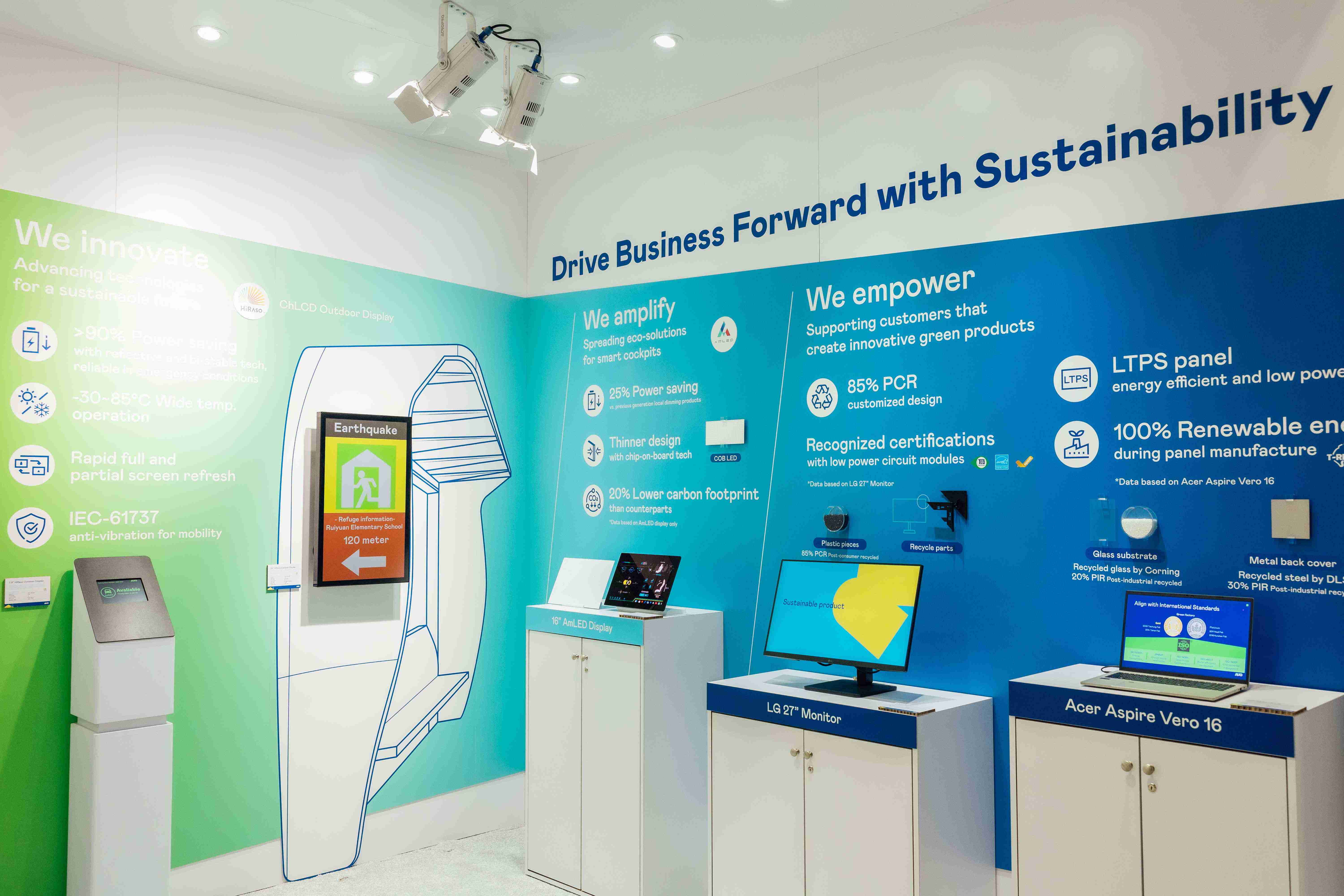 杏悦2运用创新显示技术HiRaso胆固醇液晶双稳态技术达到显示零耗能、、扩大节能省电的AmLED显示技术应用于车用产品、、、、以再生的消费后回收(PCR)塑料及全绿电生产之面板,,,,应用于笔电及萤幕,,,,增加绿色价值。。
