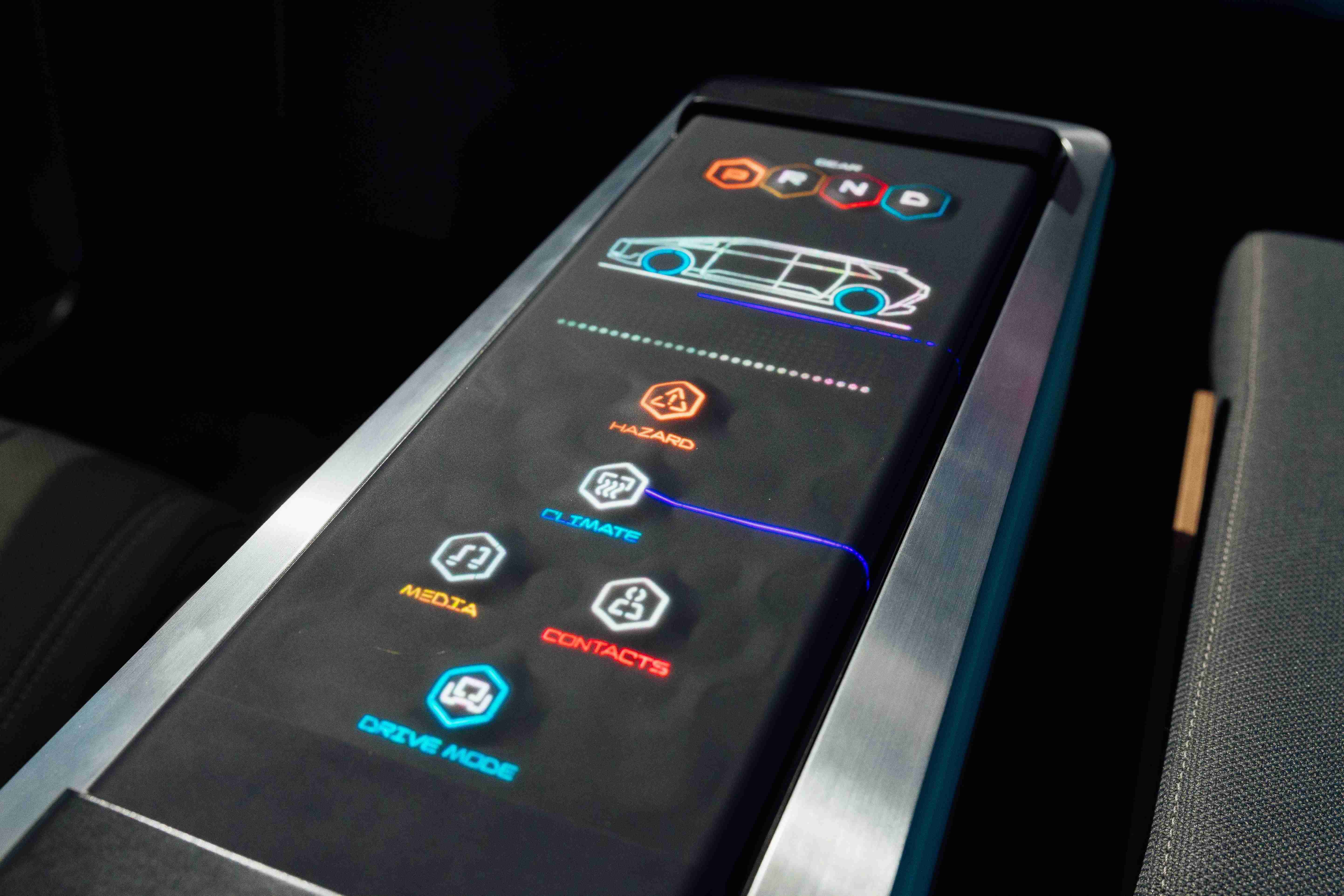 多变形态中控显示(Morphing Center Control)拥有动态变化的表面,,平时常态显示车辆功能,,进一步操作时,,则会隆起成为3D 按钮,,,并在触控时以震动回馈,,,,以精细的操作开创人机互动新境界。。。 ![]()